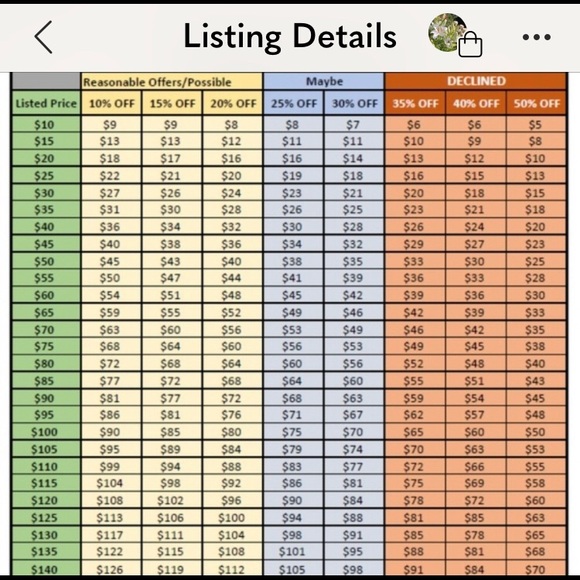 When making an offer, please look at the chart. Poshmark receives 20% of the selling price. Please be considerate when making an offer.