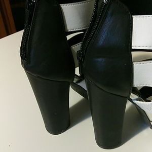 NEW by Qupid... Never Worn... Dress this white and black sandal up or down, with a 4 1/2" heel, elastic @arch, ass seen in pic. It's great with any outfit, day or evening.. I normally wear 8.5 and they fit perfect no heels hanging off the back. From 22.00 to 19.00 6/21/17..