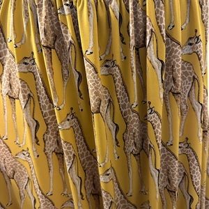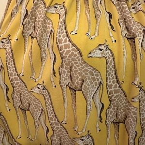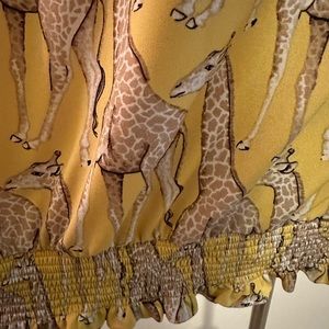 Silky to the touch. Stretchy. Ruched bottom. Sleeveless. Worn a few times only. Cute giraffe pattern on yellow. XL. Offers welcome.