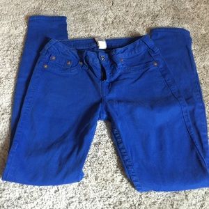Very chic royal blue jeans! No longer fit. They fit very nicely I know in the last picture you only see a bit but it gives you an idea. In very good condition used only a couple of times.
