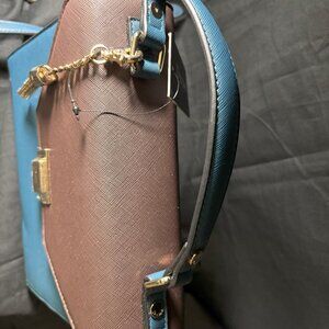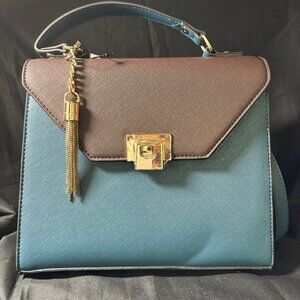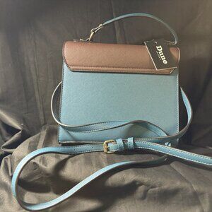ew Dune of London combination crossbody and handbag. Brown, dark blue and beige this bag has a detachable crossbody strap and magnet closure. There is a Dune charm attached to the handle. Measurments are 9.25 in wide 8 inches high7 inches deep. The handle drop is 4.5 inches and the crossbody strap drop is 24 inches at it's longest. It can be shortened. The inside is black with a zip pocket. I'm open to reasonable offers and offer discount shipping on this item.