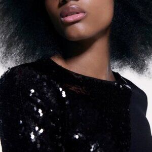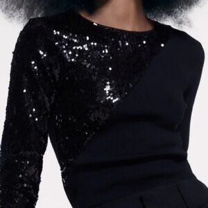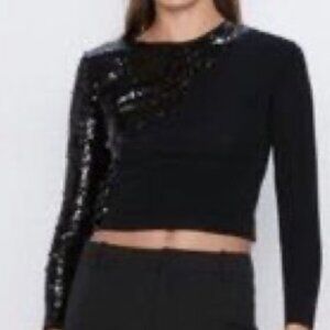 💞Price Drop💞NWOT!! ZARA WOMEN’S LUXURY SEQUINS BLACK LONG SLEEVE TOP SMALL S