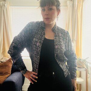 Price FIRM Vintage 80s 90s Grey Abstract Print Button Down Blouse Jacket | S/M