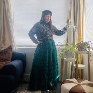 Measurements (approx.)- Bust 17.5” (doubled 35”) Waist 13”-15” (doubled 26”-30”) Length 19.5” Sleeve 17” from armpit