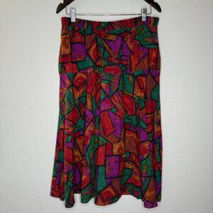 Price FIRM Vintage Skirt 90s Purple Red Green Abstract Printed Skirt | XL/0X