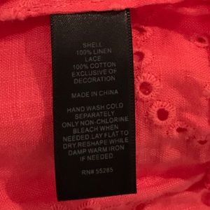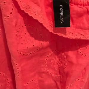 This top is from Express and is in a size Extra Small. It is one shoulder off which falls across the body. The top is in a beautiful red coral shade. It is made of 100% linen. It is brand new.