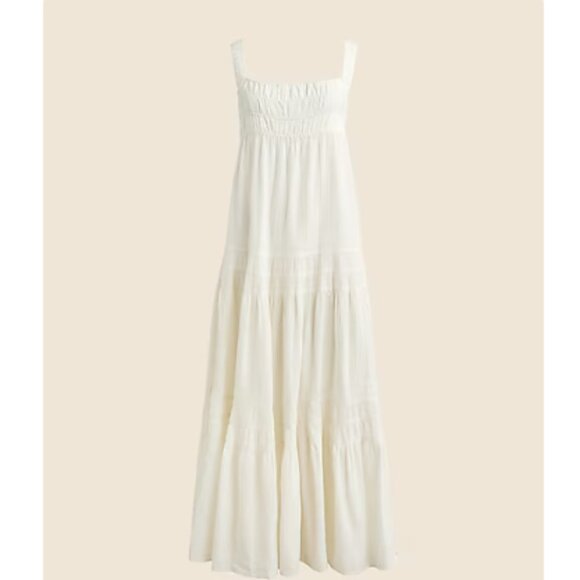**Price Is Firm** J. Crew Guaze Tiered Ivory Maxi Dress Sz M NWT