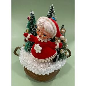 Price Reduced Vintage Mrs. Claus Assemblage in a Tin Pot