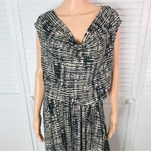 Details: Calvin Klein blotted print stretch knit belted sleeveless dress.