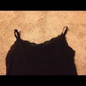 First tank is long with lace trim at top and bottom. Ribbed material. Straps are adjustable. Brand is Faded Glory. 97% cotton 3% spandex. Machine wash and tumble dry. Second tank is cropped with beading (see picture). Very soft. 100% rayon. Straps are adjustable. Brand is Passport. Hand wash and lay flat to dry. Both from smoke and pet free home.