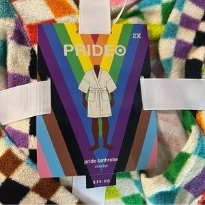 Celebrate in comfort and style with this vibrant rainbow checkered robe from Target’s exclusive Pride Collection, designed by an LGBTQIA+ artist. Made from soft, cozy fabric featuring bold geometric patterns in a multicolor palette. Includes two front pockets and a matching waist tie for a relaxed, adjustable fit.