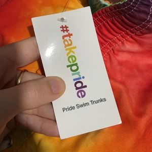 Rainbow tie-dye swim trunks channel the colors of the Pride flag
