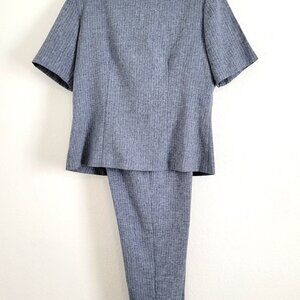 Pride & Joy Womens 2pc Short Sleeve and Pant Suit Blue Pinstripe Size 10p