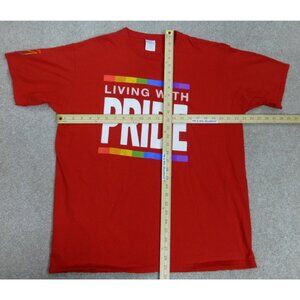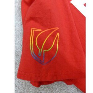 Description: Pre-Owned and still in good condition. Light stretch on fabric. Short Sleeves. Pride at front. Gilead logo at back. Gilead logo at sleeve.