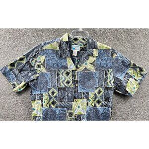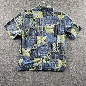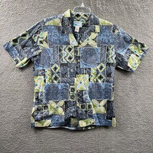Pride Of Hawaii Mens Aloha Shirt Large Blue Floral Hawaiian Reverse Print Pocket