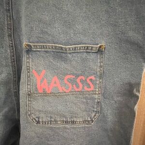 Yaasss painted on the back pocket