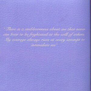 On the back of the book cover is the quote "There is a stubbornness about me that never can bear to be frightened at the will of others. My courage always rises at every attempt to intimidate me."