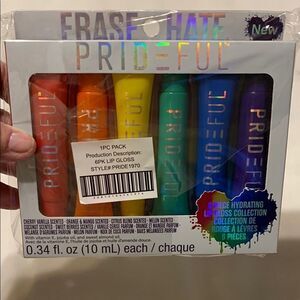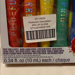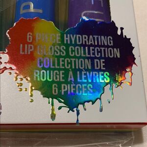 Vibrant lip gloss set with six colors. Perfect for adding a pop of color. NWT & Smoke free/Pet free home. See ALL photos for complete description/details.