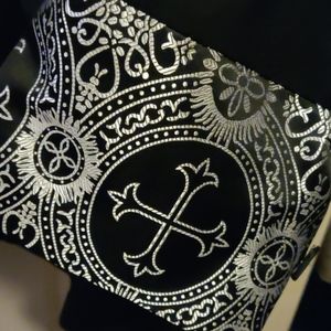 Black and silver priest/pastor coat, great for looking formal in any kind of religious capacity. Tailored to an XL. Dry Clean only
