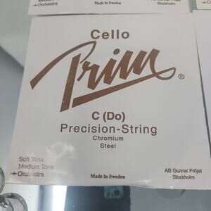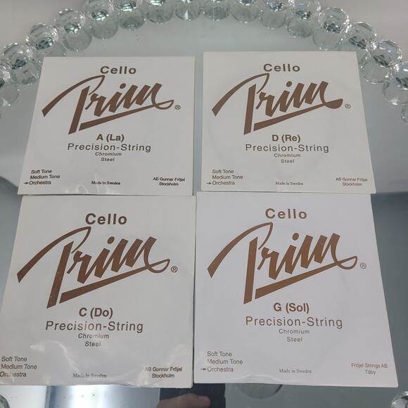 Enhance your cello's tone and projection with this NEW & SEALED set of Prim Cello Strings! These renowned strings are made in Sweden and are favored by many cellists for their robust sound and reliability.