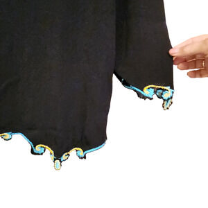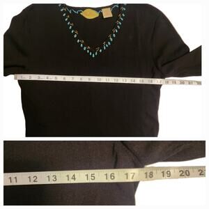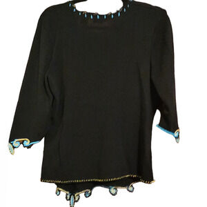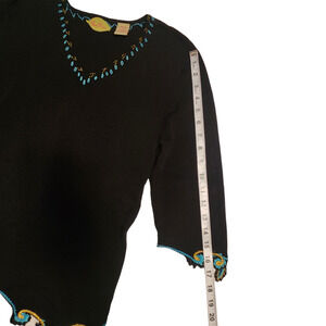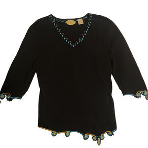 Prima Bella Embroidered Beaded V-neck Black Sweater, three-quarter sleeve sz M