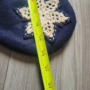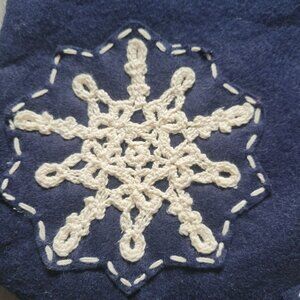 Prima Creations Navy Blue Felt Christmas Stocking Crochet Snowflake Design Lace