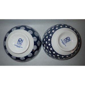Prima Design Ramen Bowls Blue White Set of 2 Geometric Prints Trendy