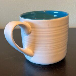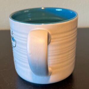 Give the dog lovers in your life a reason to smile with this adorable, subtly ribbed white stoneware mug featuring an embossed image of a super hero dog wearing a teal, black and white turtleneck sweater and a teal super hero mask. Incised black text reads, SUPAW HERO. The teal interior features attractive ribbing. Comfortable and easy-to-grip handle. Dishwasher and microwave safe. Measures 4” tall with a 3.75” diameter; 5.5” across including the handle. Holds 16 fluid oz. From Prima Design