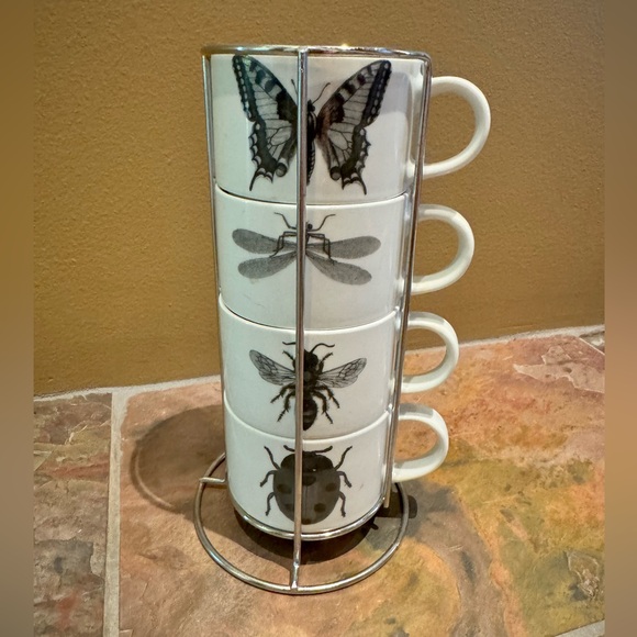 So adorable for your insect/bug enthusiast AND super useful. 4 mugs with really cool design: ladybug, wasp, butterfly and dragonfly. Has its own metal nesting place!