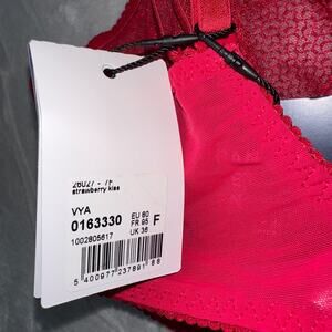 Prima Donna Bra 36F Red Vya Full Cup Strawberry Kiss Underwire Lace NWT!