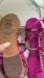 Dazzling fuchsia sandals with gold accents. Features sparkling embellishments. Ideal for a chic look.