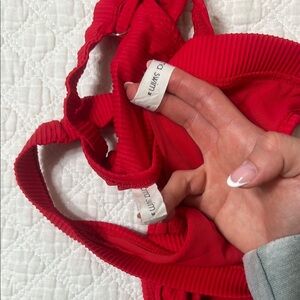 Dive into style with the Red Ribbed Bikini Set. This two-piece swimsuit offers a sleek and sexy look, perfect for any beach day.