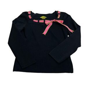 Prima Bella black ribbon tie 3/4 sleeve sweater size S
