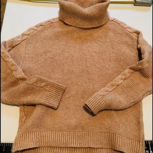 Primark tan / nude loose fit knit turtleneck sweaters/ cable knit down arms