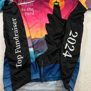 Enhance your cycling experience with this Primal Men's Sport Cut Raglan Jersey, featuring a vibrant multicolor design. Designed for the Bike MS Ride The Vineyard '24, it offers comfort and style.