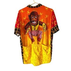 Primal Wear Mens Cycling Jersey Monkey Cymbals Panky Shirt size XL Yellow Red Orange in excellent condition. Measurements laying flat chest 23 inches across and length 26 1/2 inches long front and back 28 inches long