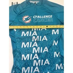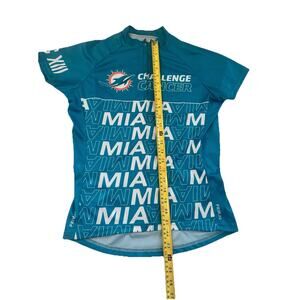 This vibrant green jersey, size medium, commemorates the Miami Dolphins Cancer Challenge.
