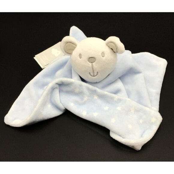 Primark Bear Baby Lovey White Blue Plush Stars Soft Security Blanket Boy 12x12