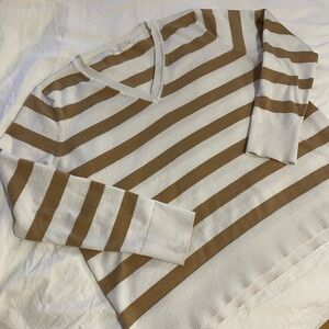 Stylish V-neck sweater with bold stripes. Ideal for everyday comfort.