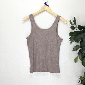 A medium weight tank top with a ribbed, knit design. Pretty stretchy with scoop neck. Perfect for the transition into fall weather!