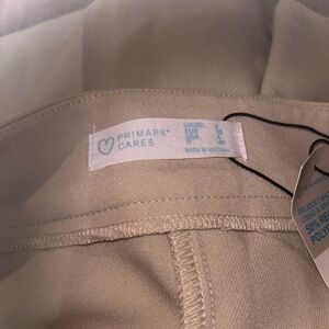 The product is a pair of Primark Cream Sailor Shorts in size 4 with pockets, perfect for a casual or party occasion. The shorts feature a solid pattern with a zip closure and flat front design, made of polyester material in ivory color. With a nautical theme and USA/ American accents, these shorts are ideal for summer or spring activities like walking or dancing. The design includes button accents and slash pockets, adding a touch of preppy style to the overall look. Made in Vietnam 118
