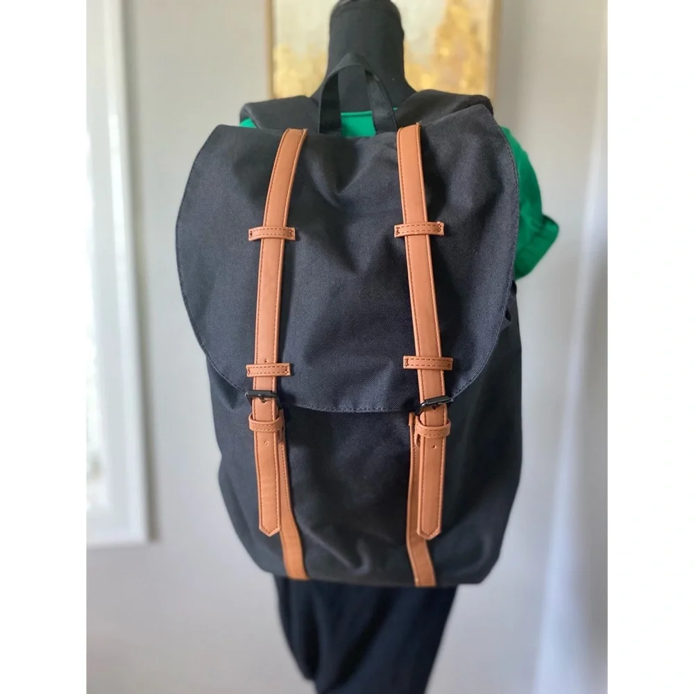 Has a open pocket inside for laptop and a zipper pocket for smaller items. Great for a weekend away or every day backpack for school! In excellent condition.