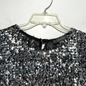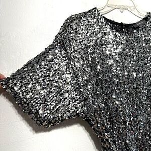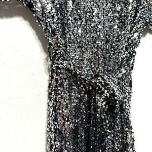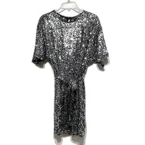 Primark Dress Full Sequin Flowy Summer Party Silver Black Belted Womens sz 8
