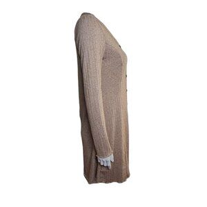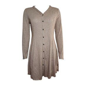Primark Dress Womens Size 10 Solid All Tan Long Sleeve Ribbed Button Front