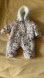 Cozy baby bodysuit with floral pattern. Features a hood with soft lining. Perfect for warmth and comfort.
