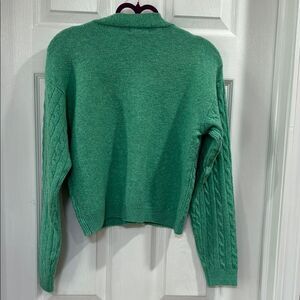 This vibrant green sweater from Primark features a classic cable knit design and a cropped fit, perfect for adding a pop of color to your outfit. The medium-weight knit and long sleeves make it ideal for layering in cooler weather.