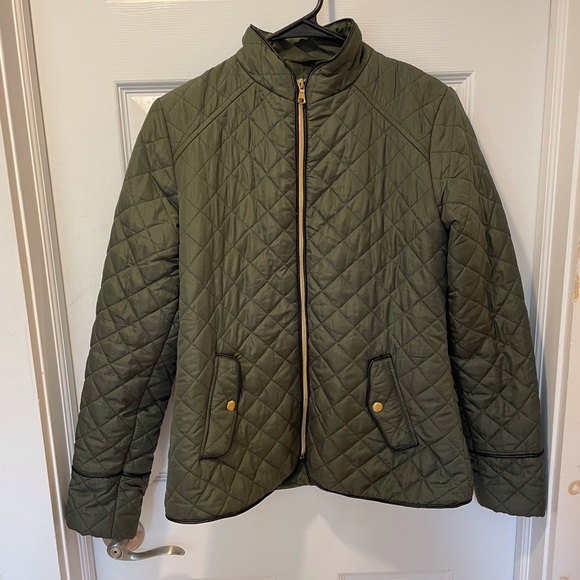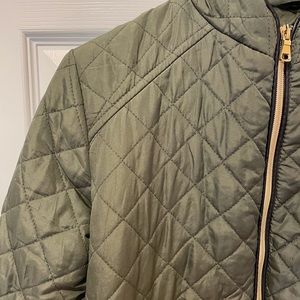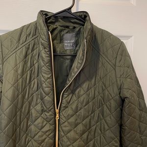 Primark spring jacket. Quilted texture and lightweight. Only worn a few times. Olive green, great condition. Gold zipper detailing. Size 4- fits a small best!