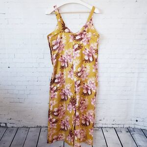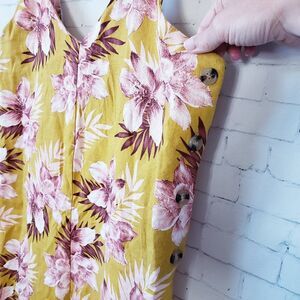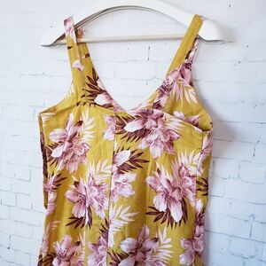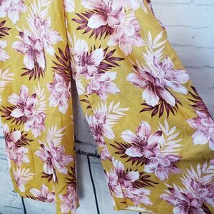 Primark Linen Blend Wide Leg Cropped Jumpsuit Size US 6 Yellow Hawaiian Floral
