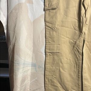 Comfortable beige cargo pants with multiple pockets. Ideal for casual wear.