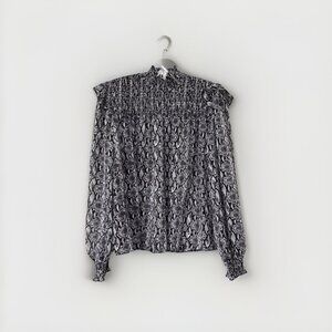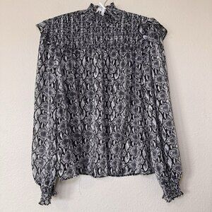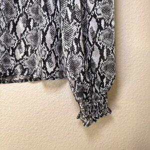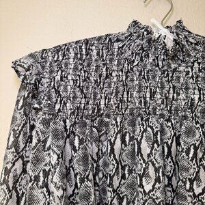 Primark Mock Neck Grey Snake Print Blouse Size 8 US Sheer Smock Neck